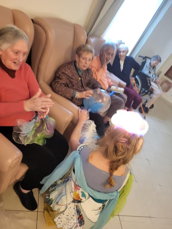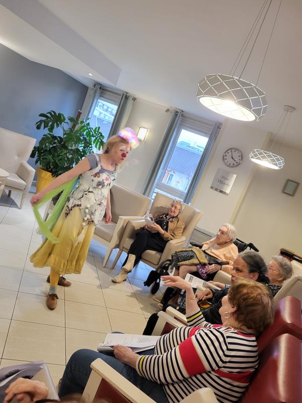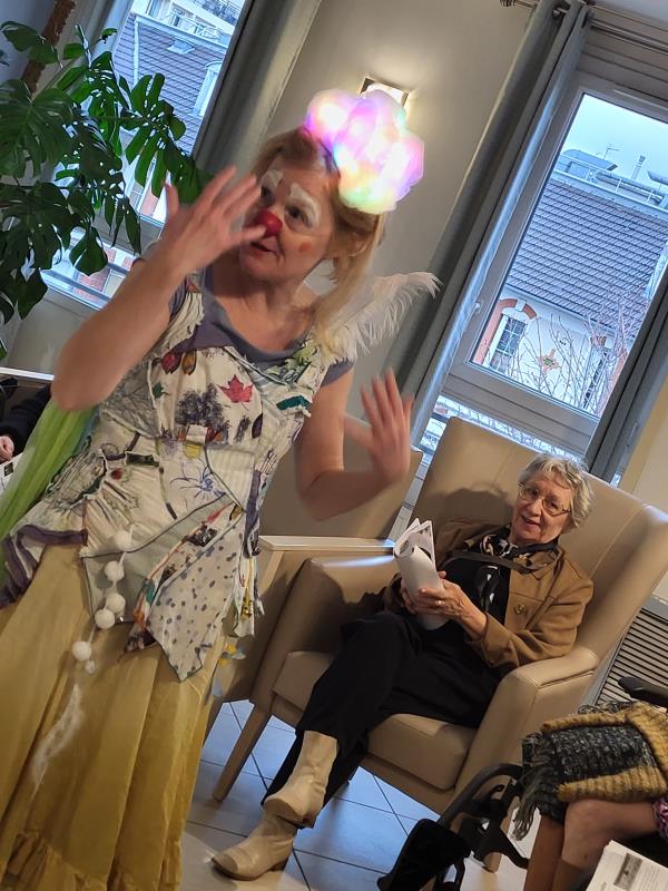 Le 10 février, Stéphanie a animé son atelier clown en déambulation dans tous les étages de l’établissement. Au fil des couloirs, les résidents ont découvert des instants de rires, de surprises et de poésie. Entre mimiques, improvisations et moments de complicité, chacun a pu participer à sa manière.