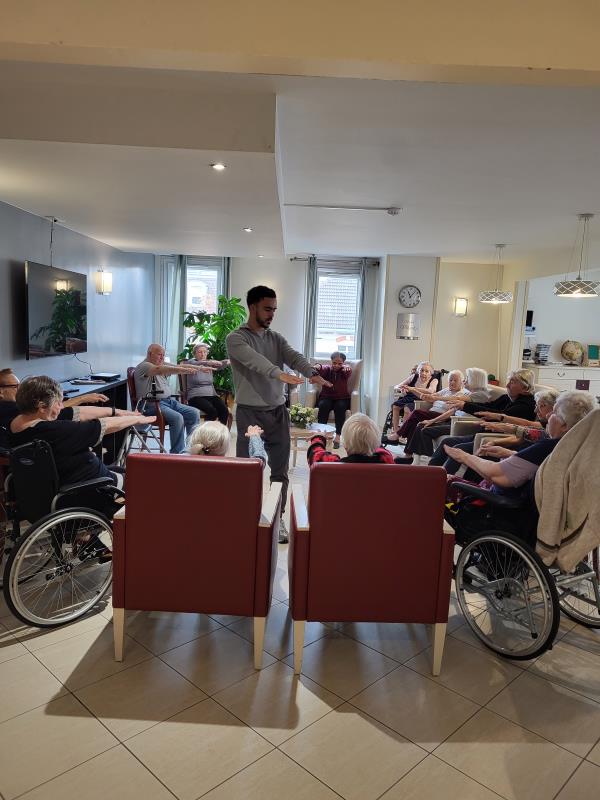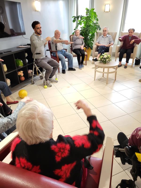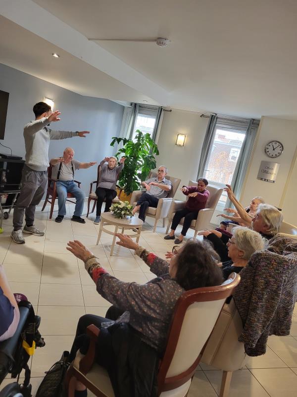 Aujourd’hui, nos résidents ont eu le plaisir de participer à une belle séance de renforcement musculaire animée par Noah.