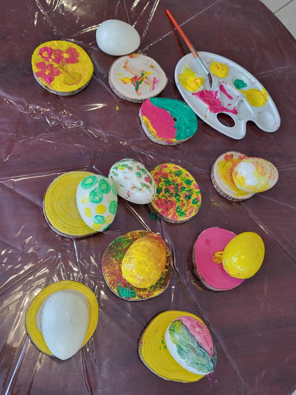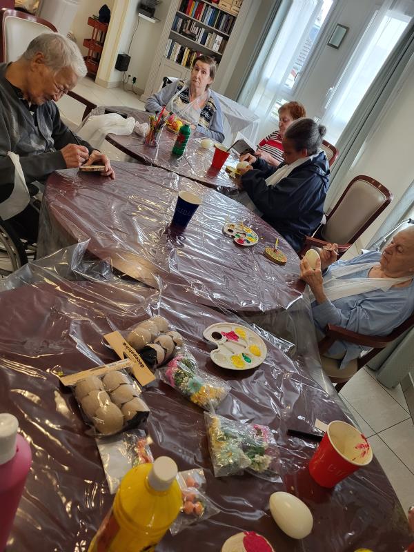 Les résidents attendent avec impatience le prochain atelier pour finaliser la décoration des œufs de Pâques. 🐣🎨