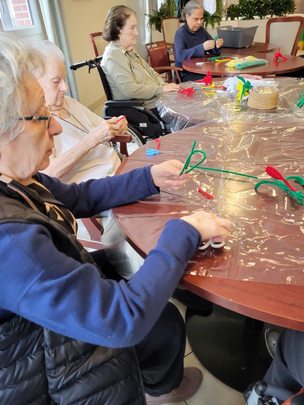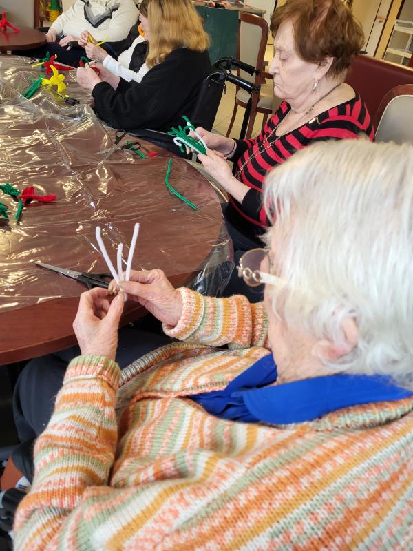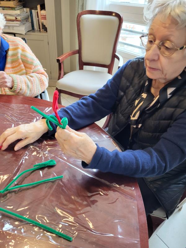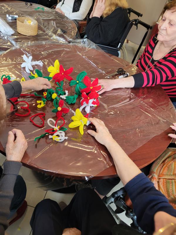 Les résidents ont pris le temps de confectionner avec soin de jolies fleurs, des cœurs et de petits bonhommes pleins de tendresse.