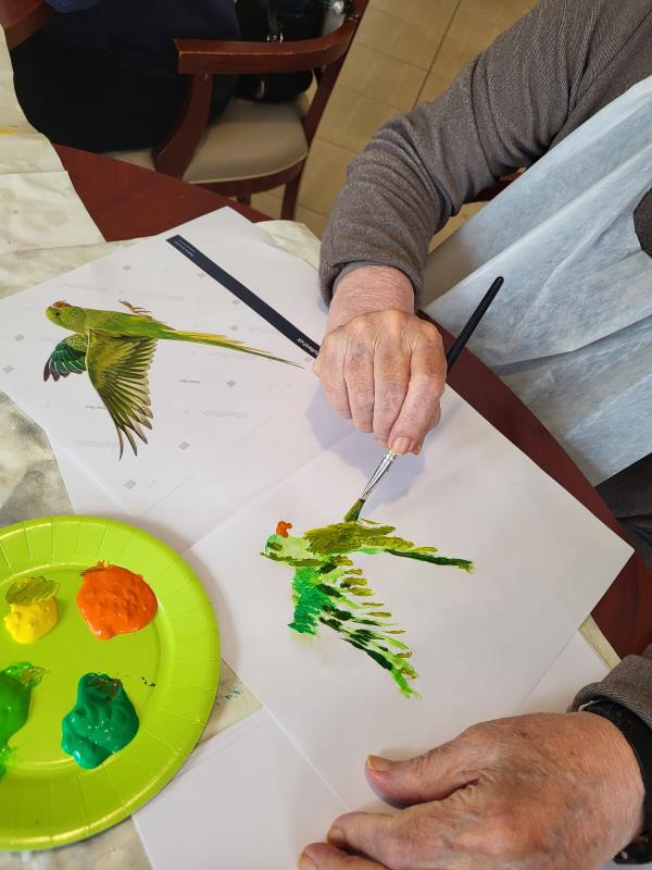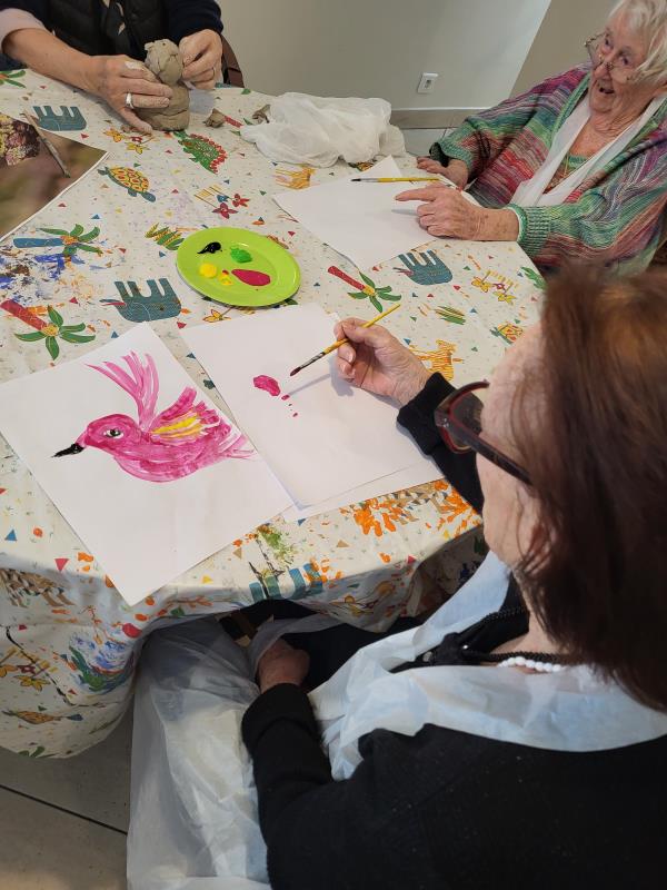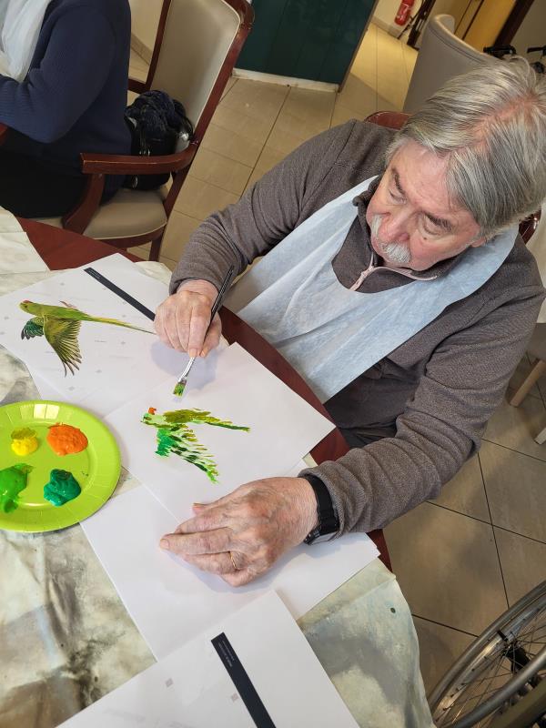 le 17 janvier les résidents ont participé à un atelier peinture plein de couleurs et de créativité à l’occasion de la Journée mondiale des oiseaux de jardin. Inspirés par la nature, ils ont réalisé de magnifiques oiseaux, tous plus jolis les uns que les autres. Cet atelier a permis de révéler de véritables talents cachés. Les résidents se sont montrés très impliqués et surtout fiers de leurs créations, qu’ils ont pris plaisir à partager.