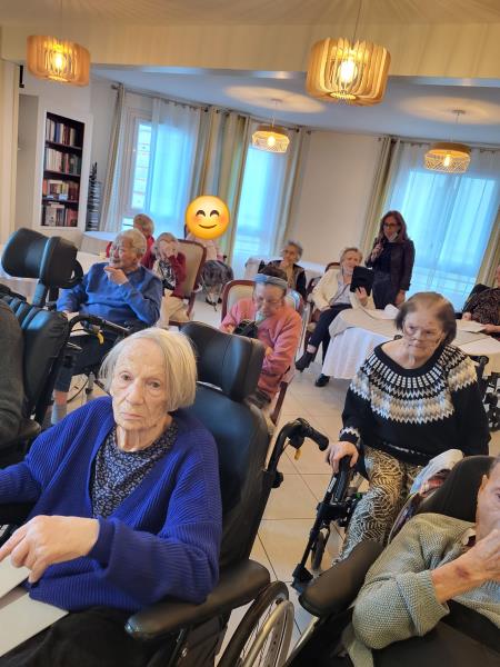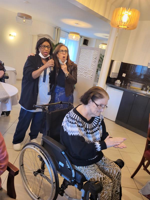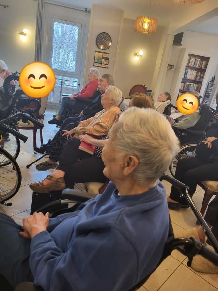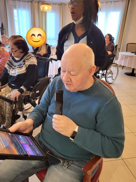 Lors de cette animation karaoké avec LED, les résidents ont chanté les paroles de chansons françaises dans une ambiance joyeuse et conviviale.Parmi les participants, on a découvert ses talons cachés, ce qui a beaucoup amusé le public. Monsieur B était très content : il a pris le micro comme un vrai chanteur.Tous les résidents ainsi que leurs familles qui ont participé ont chaleureusement applaudi les chanteurs. 👏