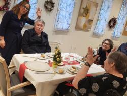 Le 25 décembre, Le repas de Noël de des résidents, partagé avec leurs familles, s’est déroulé dans une ambiance chaleureusement conviviale et très familiale. La salle était remplie de sourires, de rires et de moments de partage.