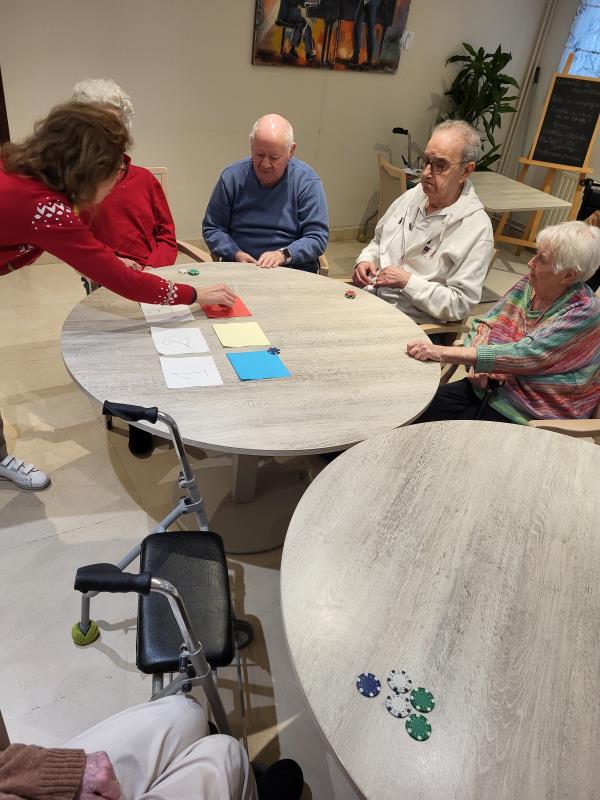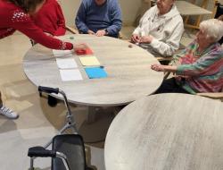 Les résidents ont participé à une activité casino, suivie de chants de Noël qui ont apporté une belle touche festive. Pour conclure, de petites cartes postales décorées et écrites avec attention, ainsi que des marque-pages, ont été offerts aux résidents.