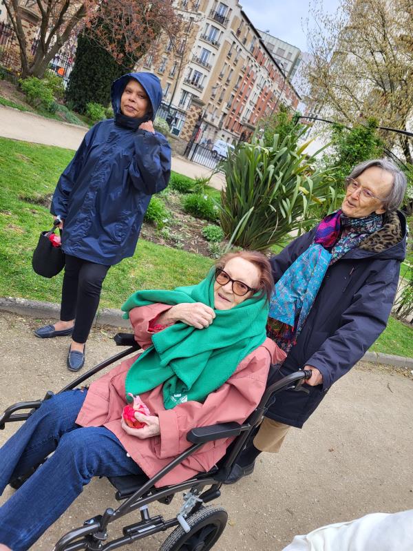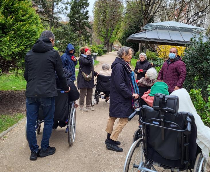Le 16 mars, les résidents ont participé à une sortie thérapeutique au parc, en présence de leurs familles. Nous étions un petit groupe de personnes à partager ce moment, accompagnés de l’animatrice, de la bénévole de la paroisse ainsi que de l’APA.