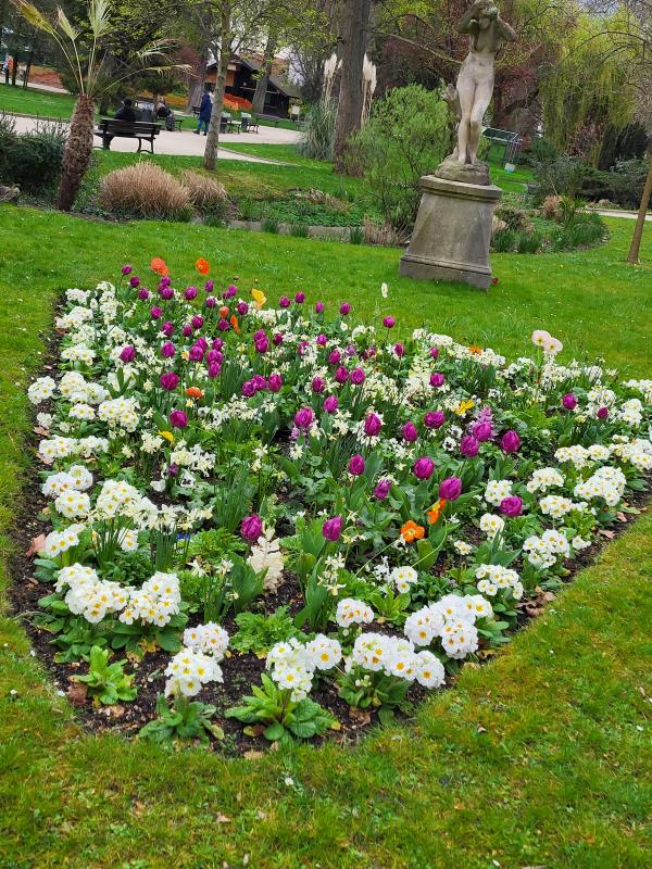 Le parc était magnifiquement habillé de fleurs de toutes les couleurs, offrant un cadre apaisant et agréable pour tous.