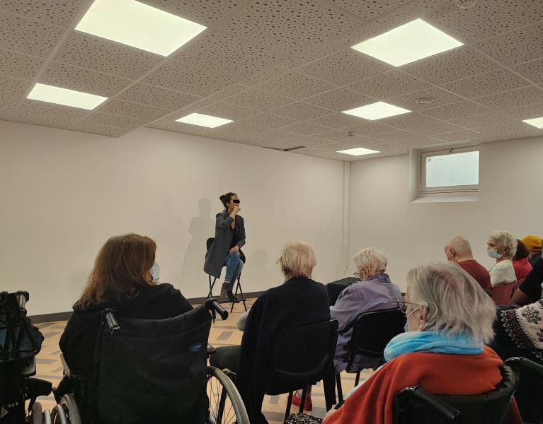Les résidents ayant participé à l'atelier théâtre ont fini en beauté ce beau projet Culture et santé avec l'invitation au Je suis 52 de Claire Chastel et Camille Joviado, le mercredi 5 novembre dernier. Le spectacle, qui avait lieu à l'hôpital Gouin, a été organisé par le théâtre de Gennevilliers (T2G) et a réuni les participants des ateliers théâtre de la résidence Les Adrets, de l'hôpital Gouin, mais aussi les professionnels.
