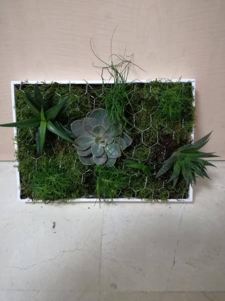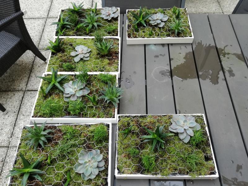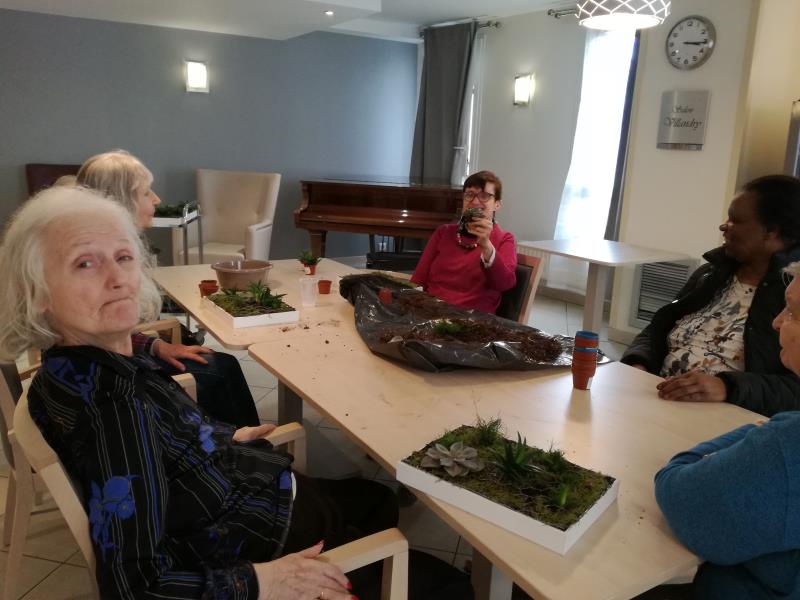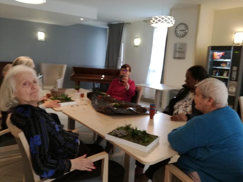 Réalisation de tableaux végétaux par les résidents. Ils ont commencés ces réalisations la semaine dernière en préparant les supports. Aujourd'hui, ils y ont planté des succulents. De très belle réalisation avec toujours beaucoup d'imagination.